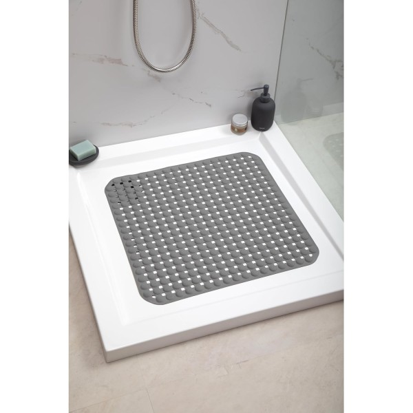 Alfombra antideslizante para ducha de 54 x 54 cm, fabricada en material resistente y flexible. Equipada con múltiples ventosas de alta calidad que garantizan una fijación firme a la superficie, evitando deslizamientos y aportando mayor seguridad y estabilidad durante el uso.