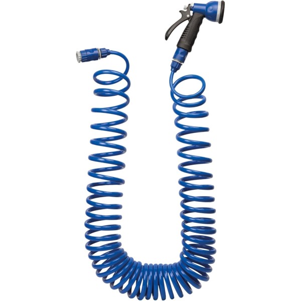 Manguera espiral de 10 metros, ideal para terrazas, patios o jardines pequeños gracias a su diseño compacto y fácil de almacenar. Incluye pistola de riego con 7 posiciones de chorro distintas, que permite adaptar el flujo de agua a cada necesidad, desde riego suave hasta limpieza más intensa. Práctica, ligera y resistente, perfecta para el cuidado diario de plantas y zonas exteriores.
