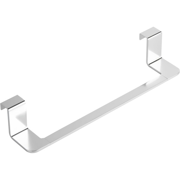 Práctico toallero que se instala sin esfuerzo colocándolo directamente sobre puertas o cajones del mueble, sin herramientas ni agujeros. Fabricado en aluminio 100% inoxidable, es resistente a la humedad y al óxido, por lo que resulta ideal para el uso diario en baños. Su diseño moderno en acabado acero brillante aporta un toque elegante y es muy fácil de limpiar. Medidas: 40 × 7 × 9,2 cm.