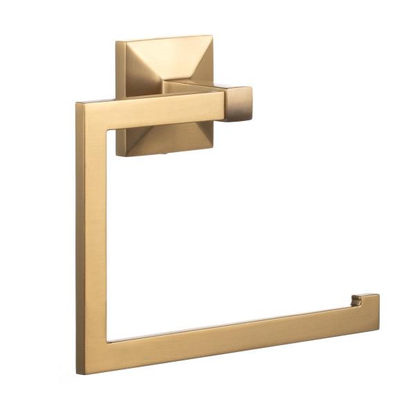 Aro toallero de diseño moderno en acabado dorado brillante, ideal para aportar un toque elegante y sofisticado al baño. Fabricado en acero inoxidable y zamak, es 100% inoxidable y altamente resistente a la humedad, garantizando durabilidad en el uso diario. Incluye kit Glue&Fix para una instalación sencilla mediante adhesivo de alta resistencia, sin necesidad de taladrar. Medidas: 20 x 6,5 x 16 cm.
