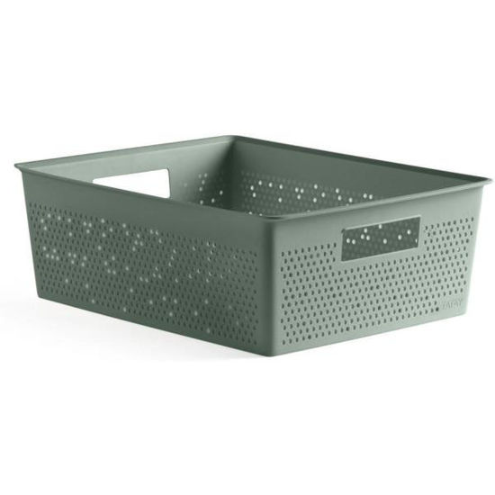 Cesta organizadora de polipropileno color verde. Medidas: 30x39x13,5 cm.