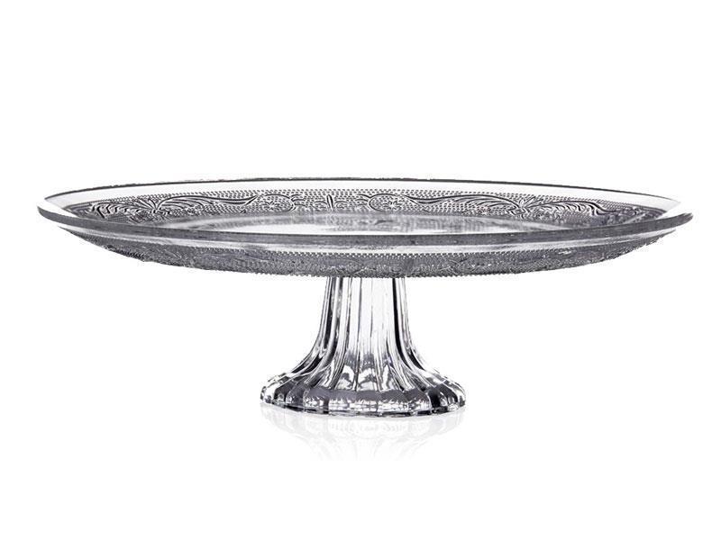 BANDEJA DE CRISTAL TRANSPARENTE CON PIE "ROMANCE" DE 22,5CM