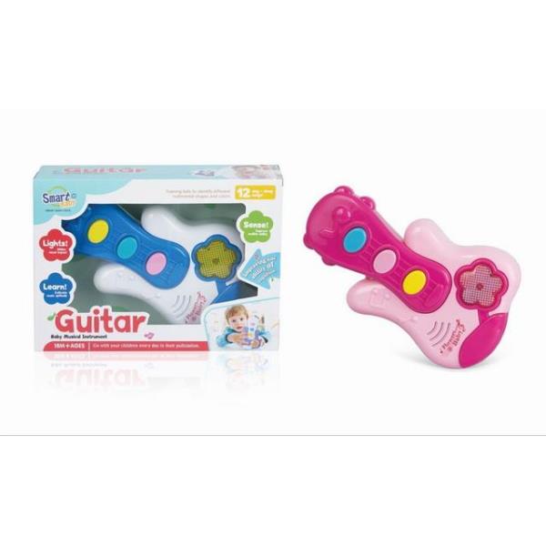 Guitarra infantil con sonidos. Disponible en dos colores (rosa-azul), puede indicar el modelo deseado en el comentario del articulo. Medidas caja: 22,2x6x16,1 cm. Edad recomendada +12 meses.