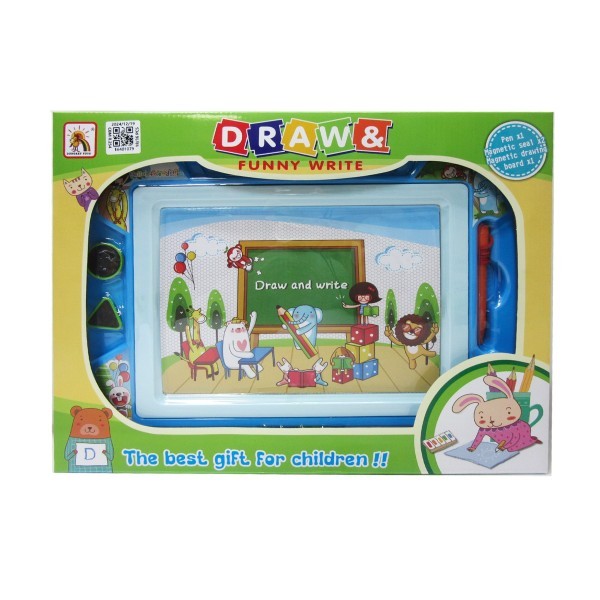 Una divertida pizarra magnética para dibujar y escribir sin parar. Incluye lápiz especial, sellos y un amplio espacio para dejar volar la creatividad de los más pequeños.