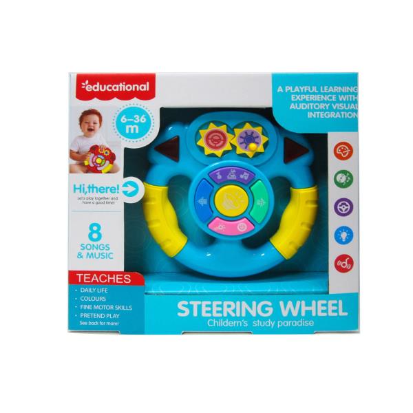 Volante con música y luces. Medidas caja: 23,5x5x22,5 cm. Edad recomendada +6 meses.