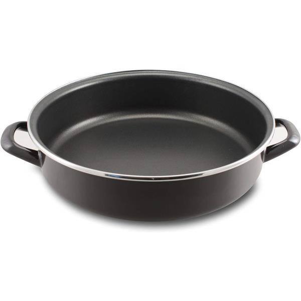 Tartera Black de 24 cm fabricada en acero esmaltado vitrificado con recubrimiento antiadherente bicapa reforzado libre de PFOA. Válida para todo tipos de cocina.