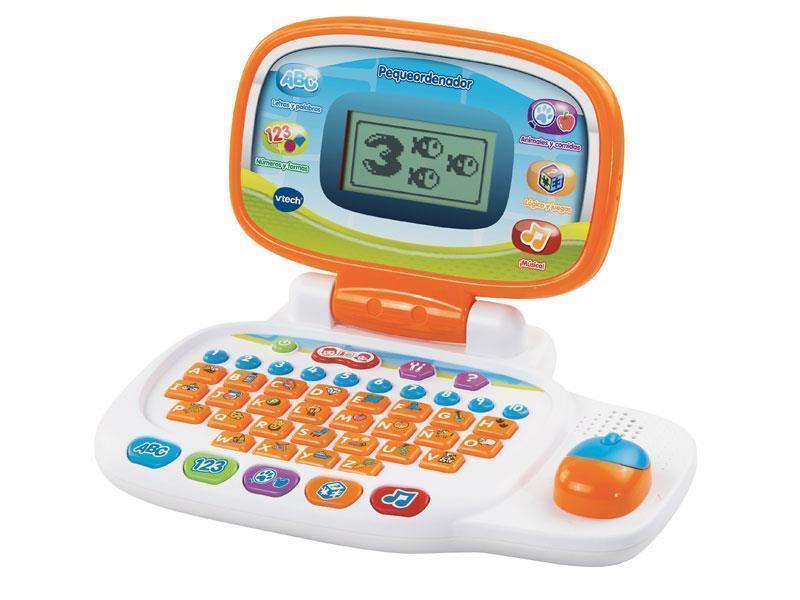 Ordenador Portátil Infantil con 20 actividades y ratón direccional. Una de las actividades permite crear un personaje cambiando el pelo, la boca, la nariaz... y otra personaliza el ordenador con nombre, edad, comida preferida... Enseña los números, los animales, los sonidos, las mayúsculas... Edad recomendada: +3 años.