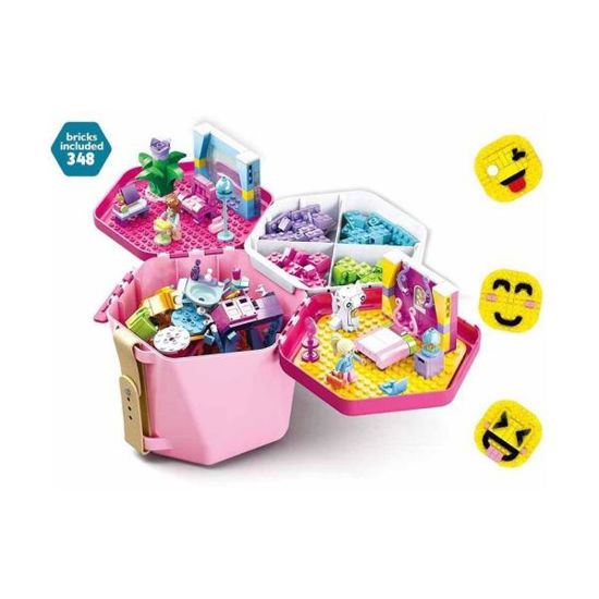 Cubo con 348 bloques de construcción. Edad recomendada +4 años.
