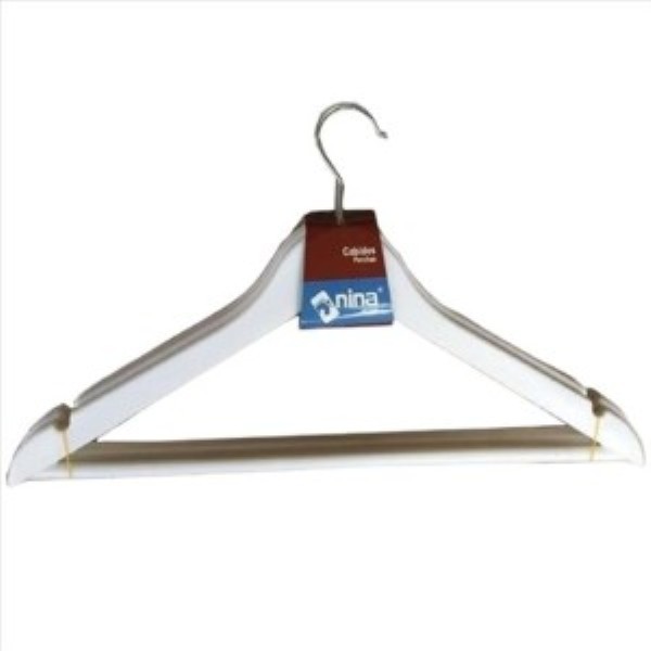 Percha de plástico blanca de 42,5x15,5 cm. Pack de 8 unidades.