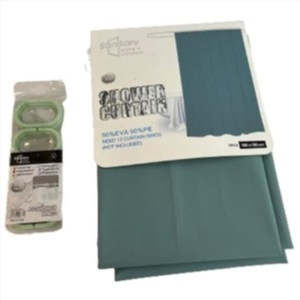 Cortina de baño fabricada en PE y EVA color azul. Medidas: 180x180 cm.