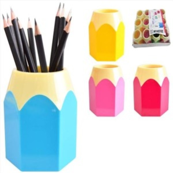 Portalápices con forma de lápiz disponible en 4 colores. Medidas: 7,5x8,5x10 cm.