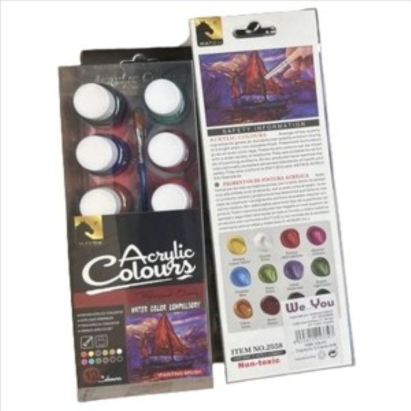 Pack de 12 pinturas acrílicas. Envase de 25 ml.