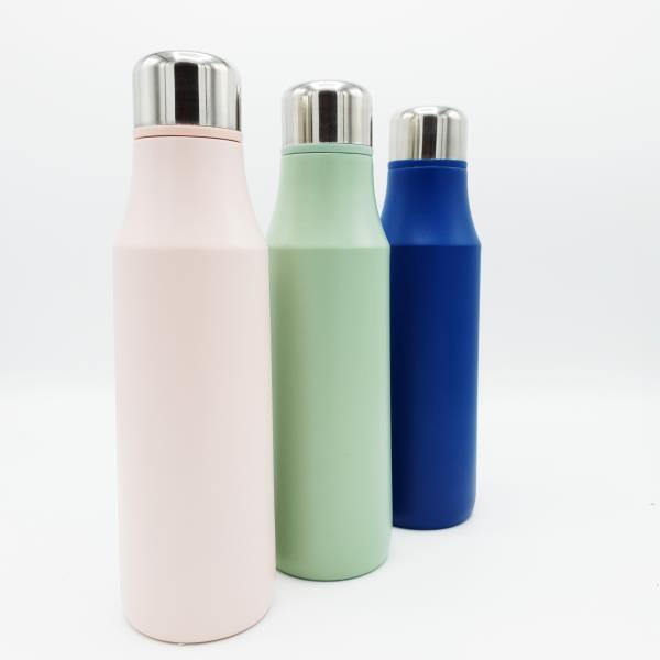 Botella térmica de aluminio con tapa disponible en varios colores (rosa, verde, azul, blanco y negro). Capacidad: 500 ml. Medidas: 6,5x25 cm.