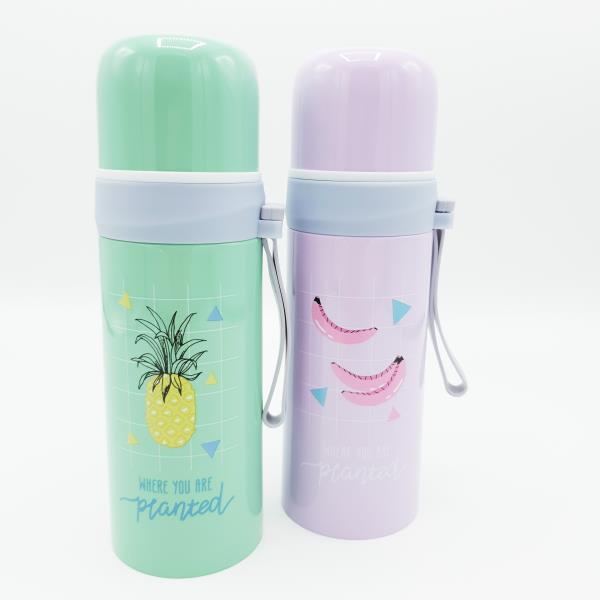 Botella térmica de aluminio con tapa disponible en varios colores (azul, verde, rosa y morado). Capacidad: 350 ml. Medidas: 6,5x20,5 cm.