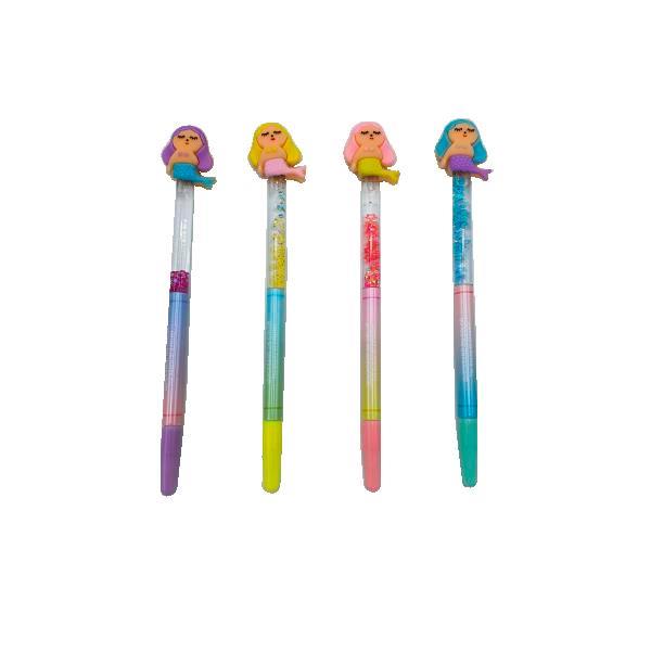 Caja de bolígrafos de 12 unidades con forma de sirena. Medida: 20.5cm. Disponble en colores surtidos.