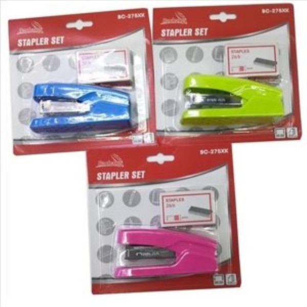 Grapadora 9x3cm +grapas 26/6 distintos colores
