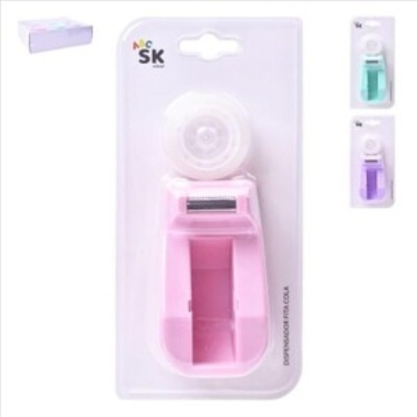 Portacelo con rollo de celo. Disponible en varios colores (malva-verde-rosa), puede indicar el modelo deseado en el comentario del articulo. Medidas: 10x5x4 cm.