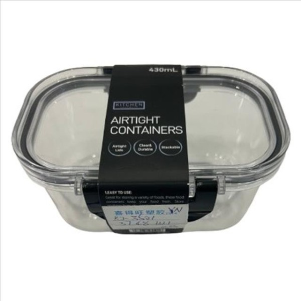 Caja multiusos fabricada en PVC con tapa de cierre hermético y clips laterales. Capacidad 430 ml. Medidas: 14 x 10 x 6,5 cm.