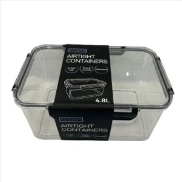 Caja multiusos fabricada en PVC con tapa de cierre hermético y clips laterales. Capacidad 4,8 litros. Medidas: 29 x 19,5 x 12,5 cm.