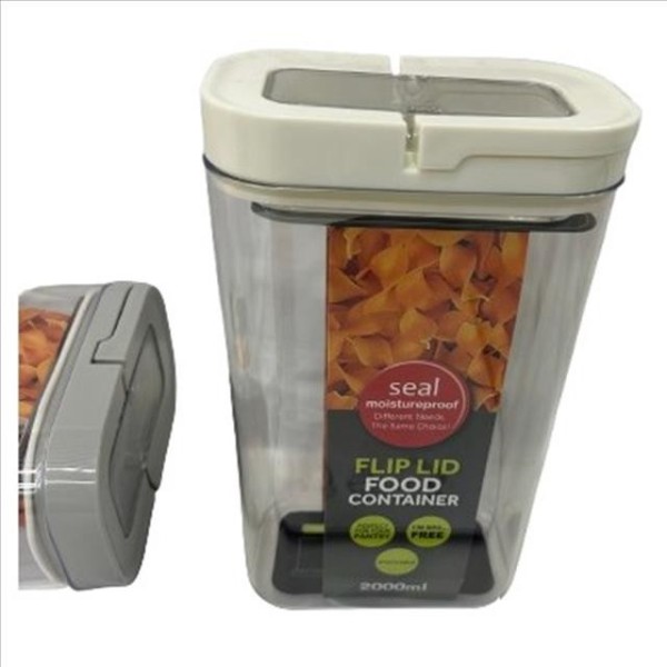 Recipiente de polipropileno con capacidad de 2 litros. Incorpora tapa con cierre hermético, ideal para conservar alimentos secos. Medidas: 14x8,8x23,5cm.