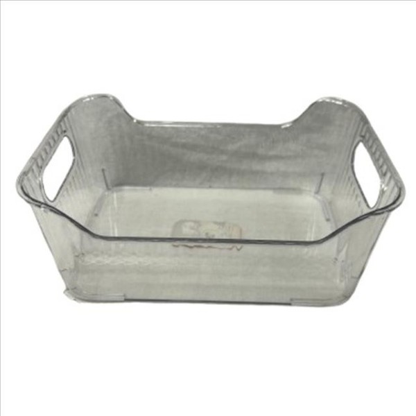 Organiza tus espacios de manera práctica y estilizada con esta cesta multiusos transparente, ideal para mantener todo en orden y siempre a la vista. Fabricada en plástico resistente, es ligera, duradera y muy fácil de limpiar. Sus agarraderas laterales permiten manipularla con total comodidad, facilitando su transporte o extracción cuando la necesites. Medidas: 30 x 21,5 x 12,5 cm.