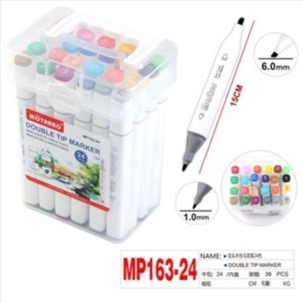 Caja con 24 rotuladores de punta doble (0,6 mm-1 mm).