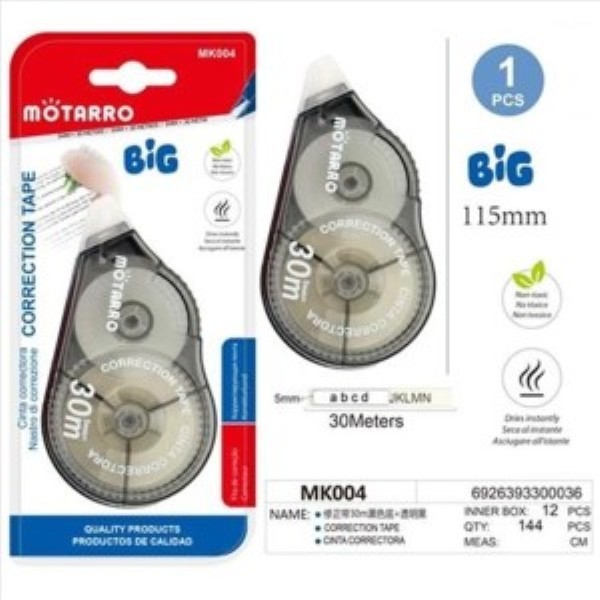 Cinta correctora de gran capacidad con 30 metros de longitud y formato ergonómico de 115 mm.