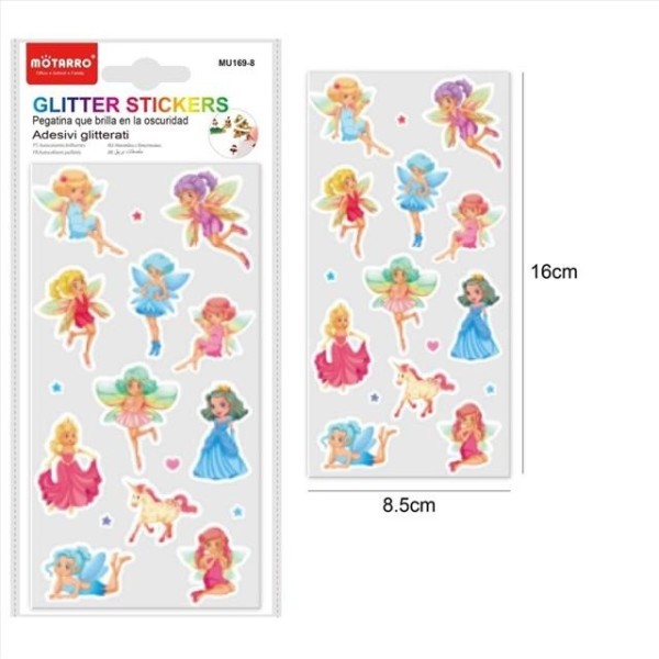 Da un toque mágico a cuadernos, carpetas, cartas o manualidades con este precioso set de pegatinas glitter de hadas.