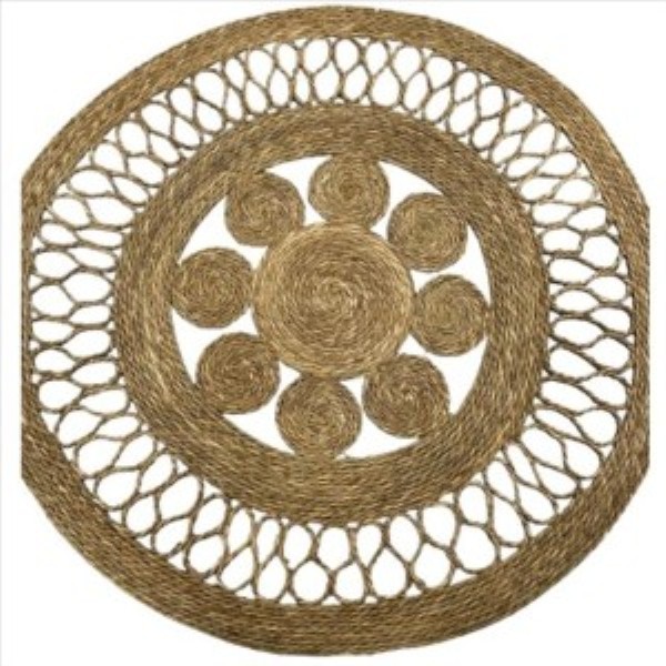 Dale un toque natural y artesanal a tu hogar con esta elegante alfombra redonda de 100 cm de diámetro. Confeccionada en fibras de yute trenzado, su diseño calado y simétrico aporta calidez y estilo boho a cualquier estancia.