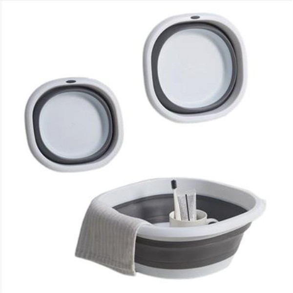 Cesto práctico y funcional, ideal para lavar, organizar o transportar pequeños objetos en cocina, baño o lavandería. Su diseño plegable permite guardarlo fácilmente ocupando muy poco espacio. Medidas: 25,3 × 25,3 × 9 cm.