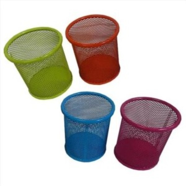 Portalápices de metal de diferentes colores. Mide 9.5x9 cm. Se vende por unidad.