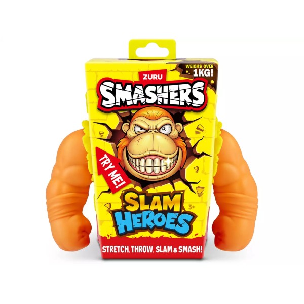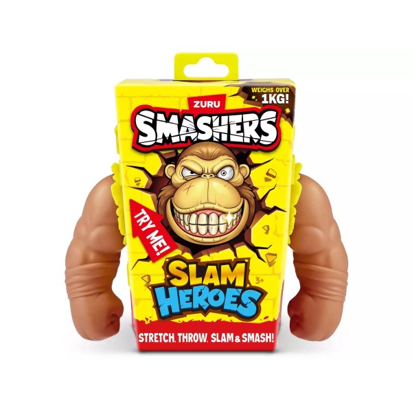 ¡Prepárate para la acción más salvaje con el poderoso Slam Hero Gorila! Súper elástico y resistente: estíralo, golpéalo y ¡vuelve a la acción! A partir de 3 años.